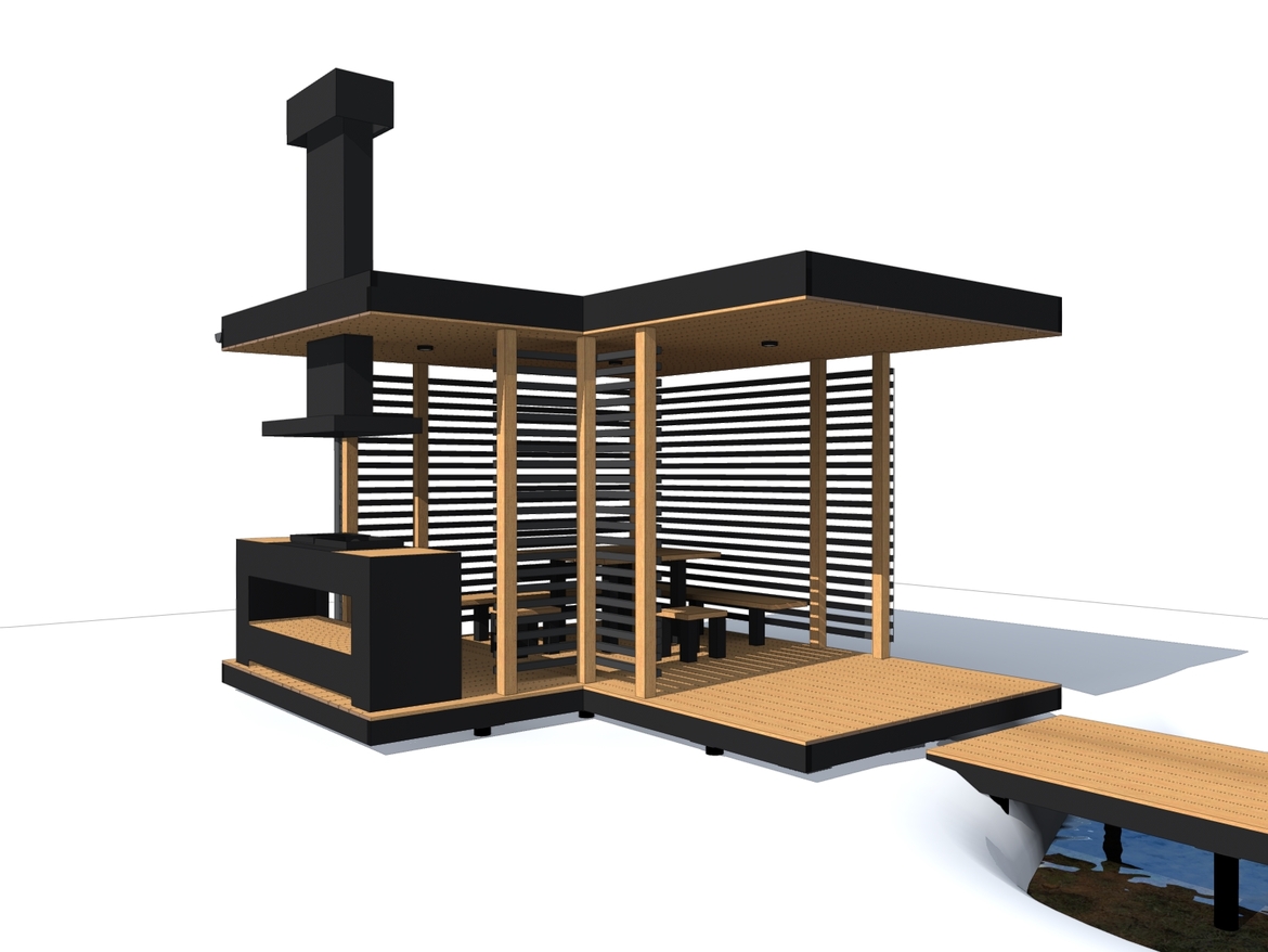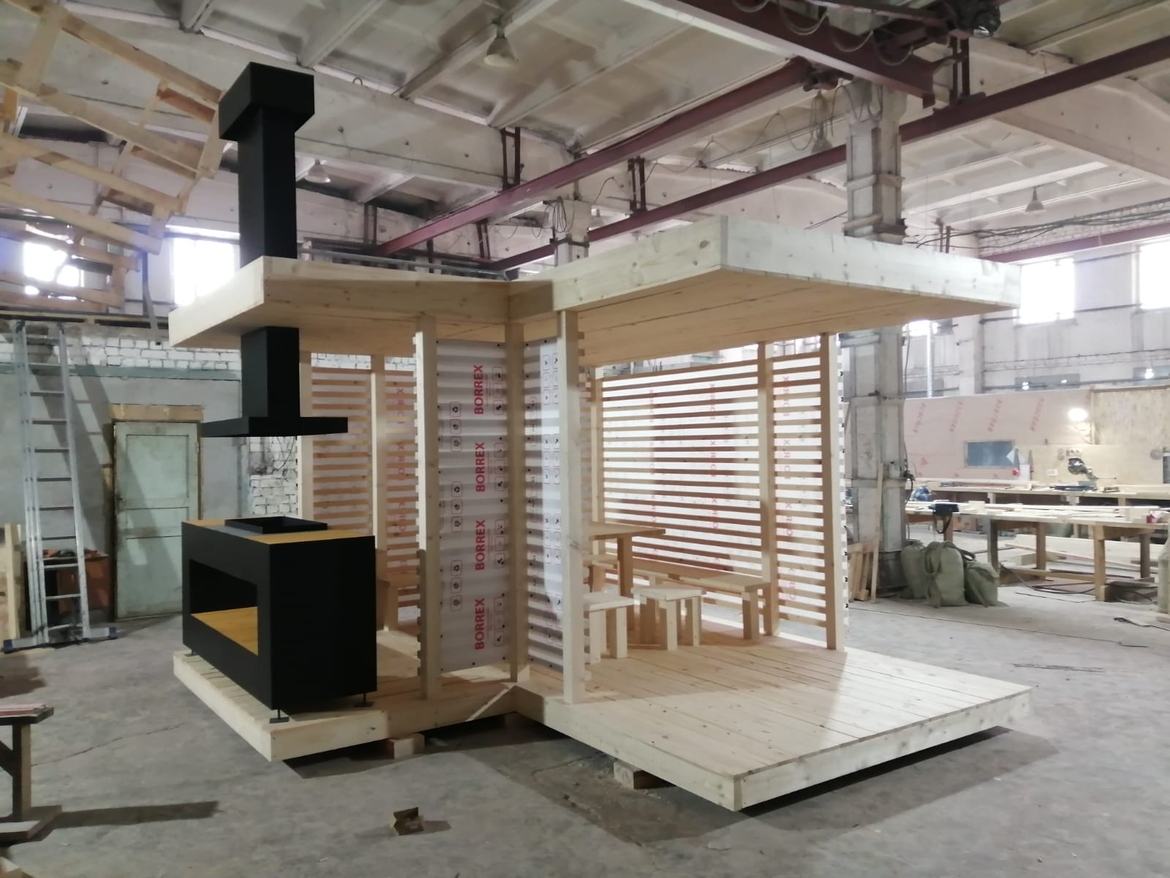 1. Каркас из сухого строганного бруса хвойных пород, обработанный огнебиозащитой, лицевые детали пропитка тонирующим антисептиком.